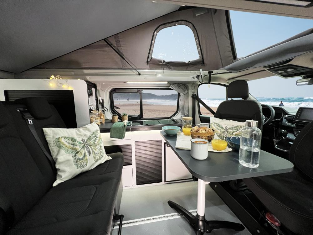 Der Flex Confort PLUS verfügt serienmäßig über zwei zusätzliche Sitze, die sich perfekt für Ihre Fahrten unter der Woche eignen. Sein oberes Bett optimiert den Platz und das Volumen im Innenraum und bietet so noch mehr Modularität und Vielseitigkeit im Alltag.